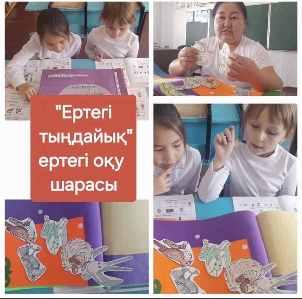 Қазақ тілі мен әдебиеті пәні бойынша «Сөз өнері» апталығы аясында бүгін пән мұғалімі бастауыш сынып оқушыларына ертегі оқып берді. «Ертегі тыңдайық» ертегі оқу шарасында оқушылар қарлығаш пен дәуіттің қалай дос болғаны туралы ертегі тыңдады. Балаларға достық туралы ертегі ұнады.